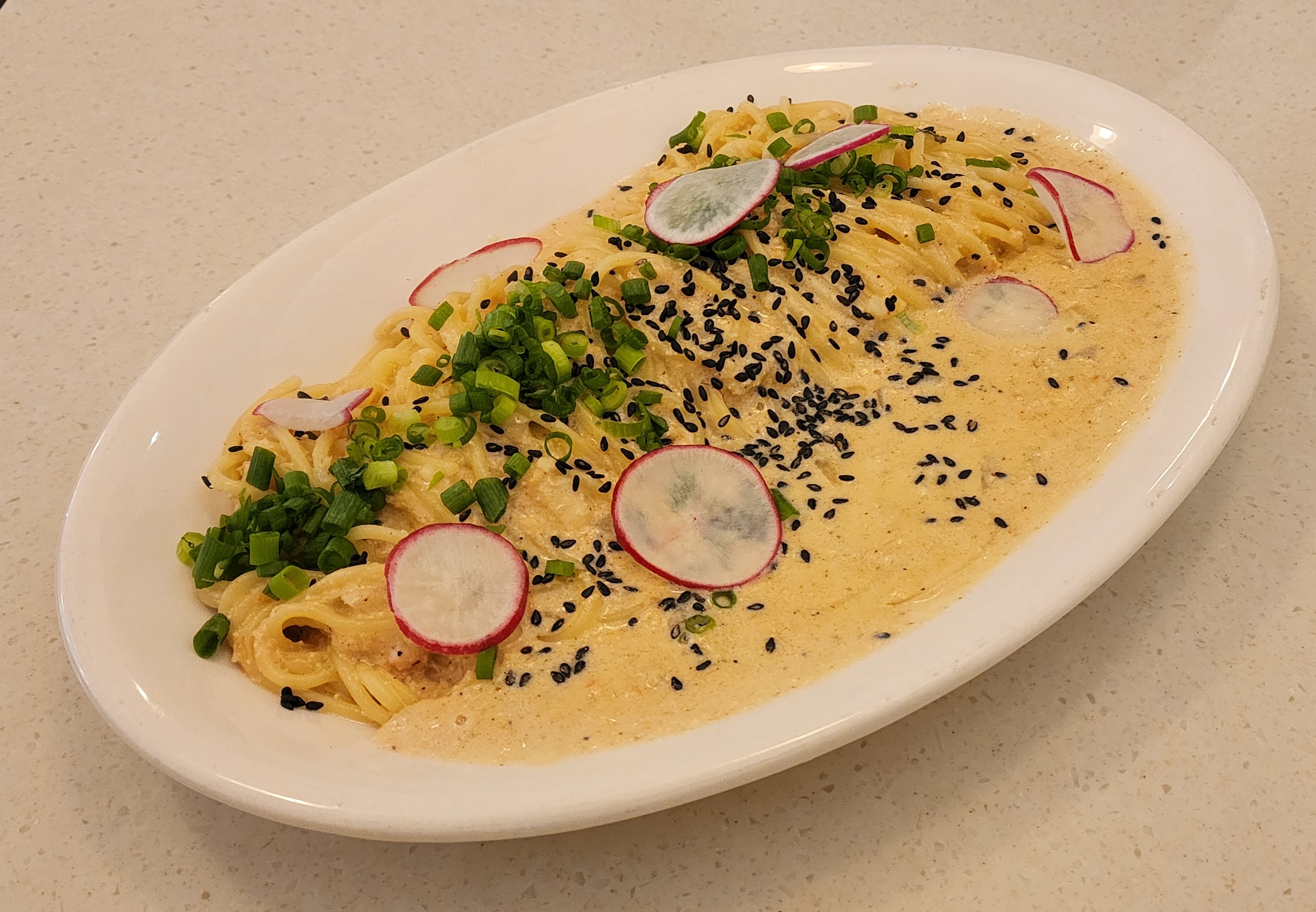 속을 파낸 명란과 게살을 크림소스에 넣어 약간 매콤하게 즐길 수 있는 파스타라고 설명되어있었는데