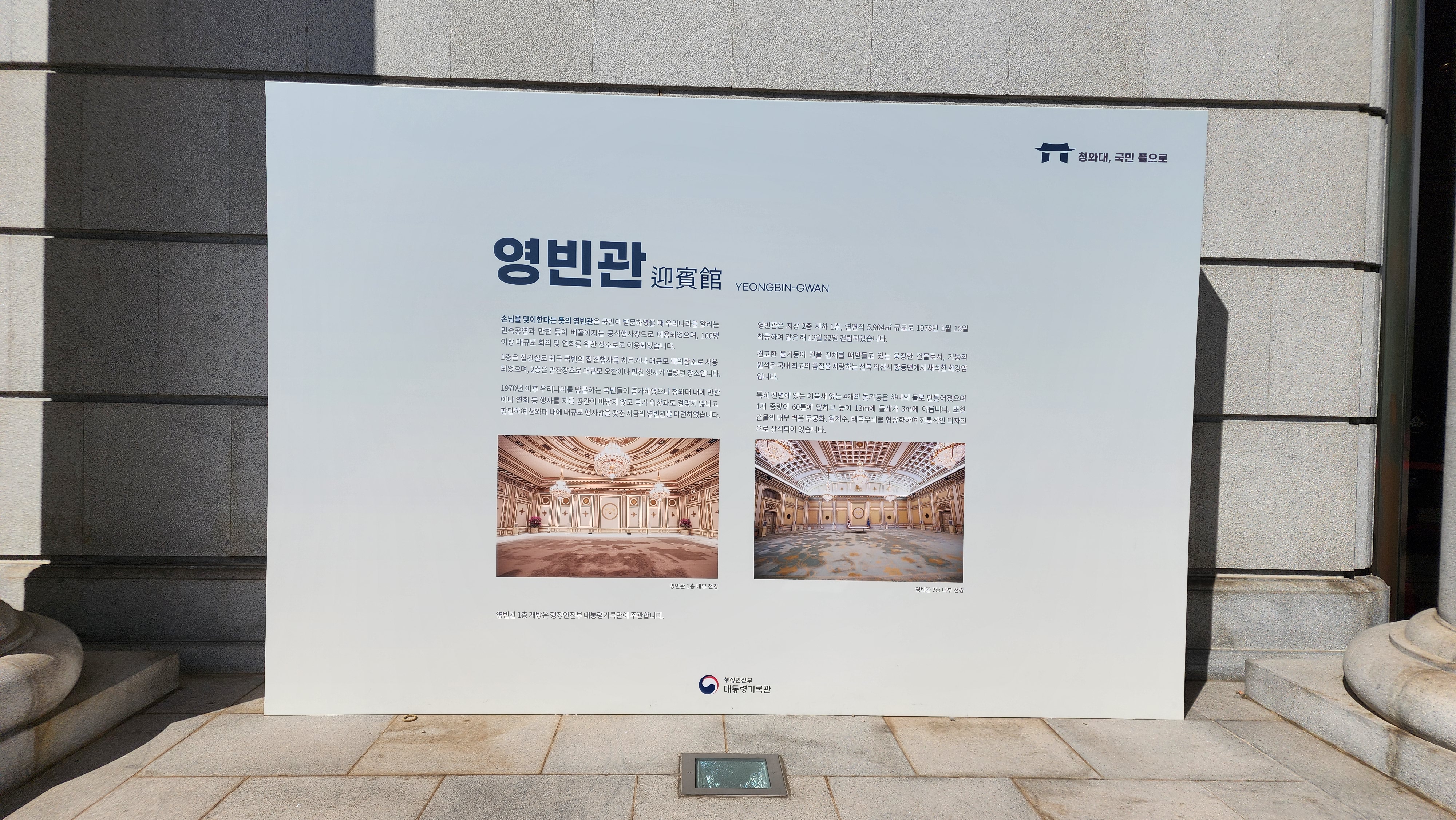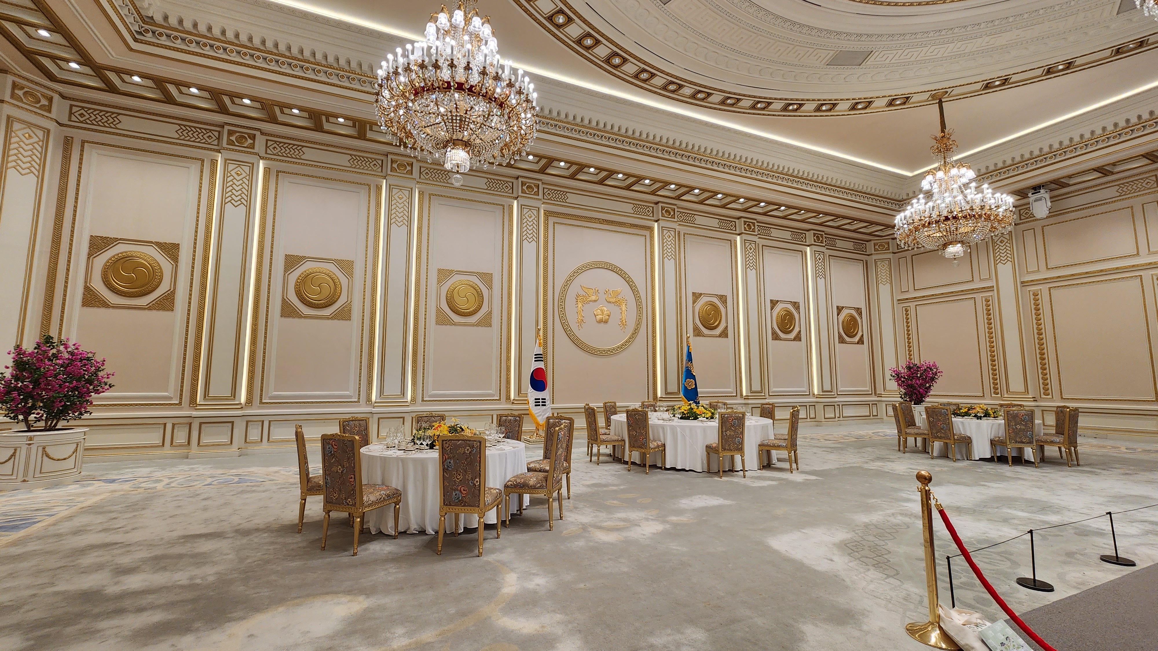 국빈을 위한 전용 숙소인 영빈관 부터 구경했는데요, 만찬장이 정말 멋지더라구요.