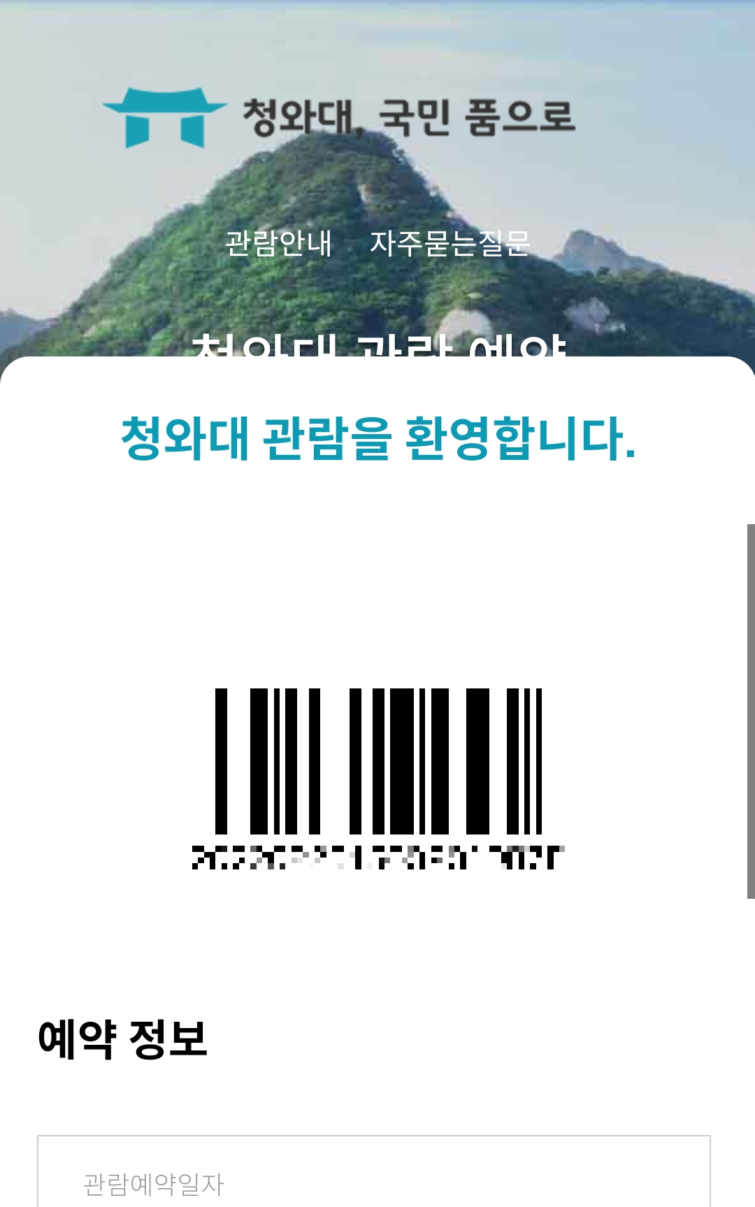 이제 다녀오실 분들은 대충 다녀오셨겠다 싶어서 청와대 관람 예약을 했어요.