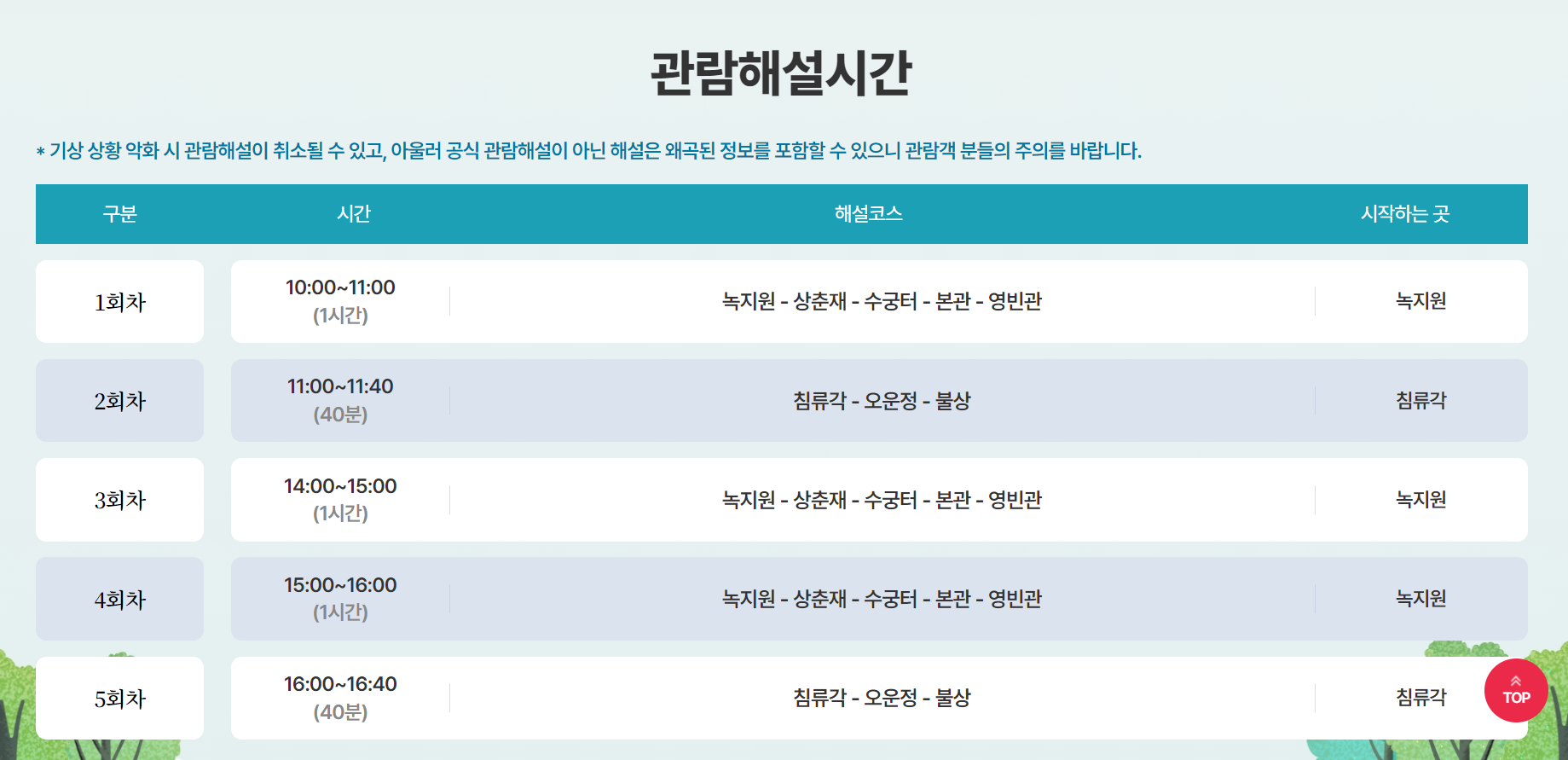 입장시 생수, 양산 등은 지참하길 권장하는데 수궁터 근처에 생수 자판기(카드로만 판매)가 있으니 혹시나 마실 물 찾으시는 분들은 수궁터에서 이용하시길 바랄게요.