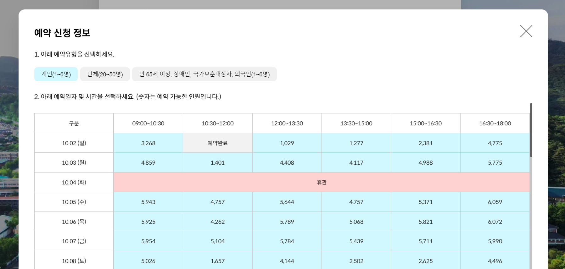 관람 예약 가능일은 신청일 기준 다음주부터 4주간이며, 매주 일요일 00시에 갱신됩니다.