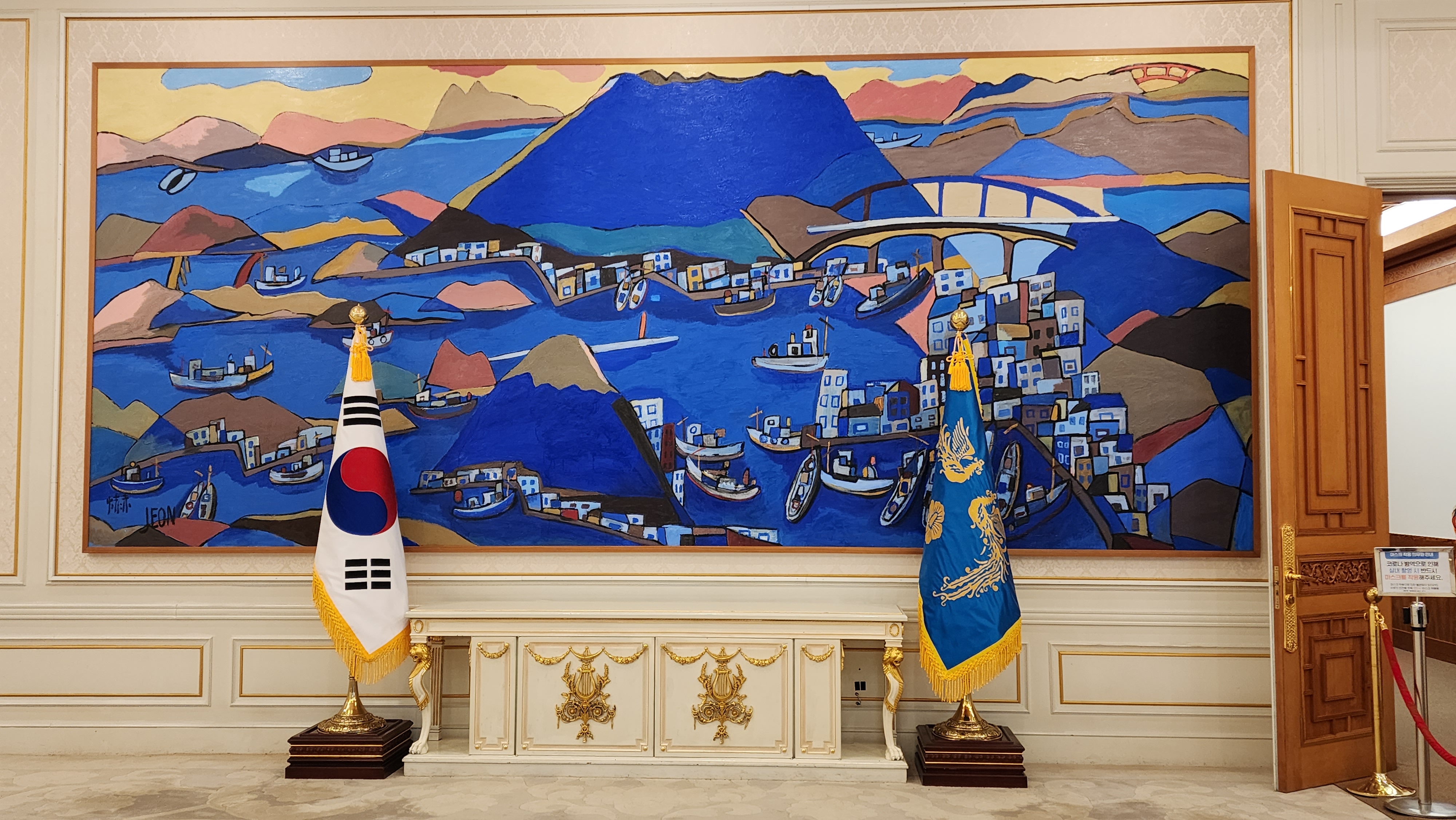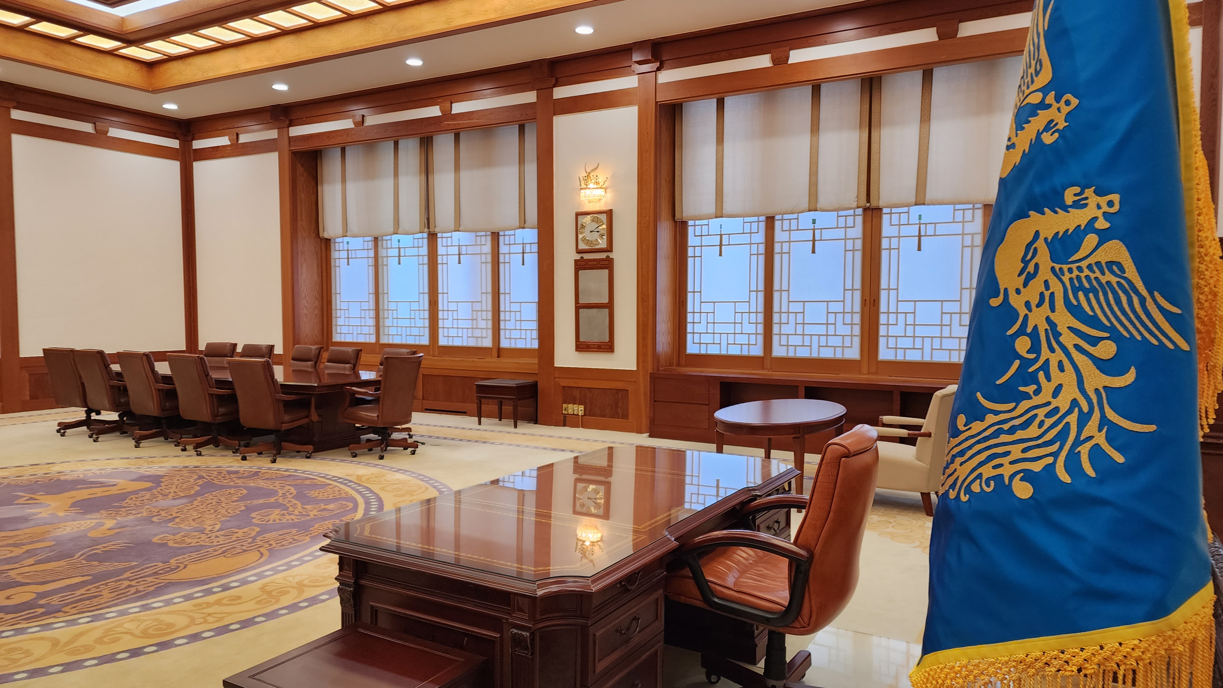 청와대 본관에서 동글이가 눈여겨 봤던건 커텐과 콘센트, 쓰레기통 등이었어요.