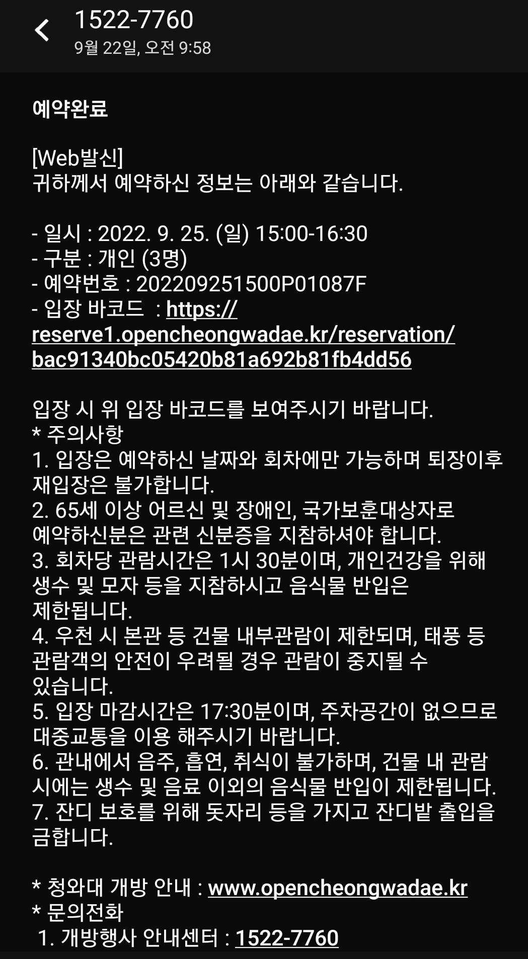 관람내용이 만족스러워서 청와대 사랑채는 다음 포스팅에 자세하게 소개해드릴게요!
