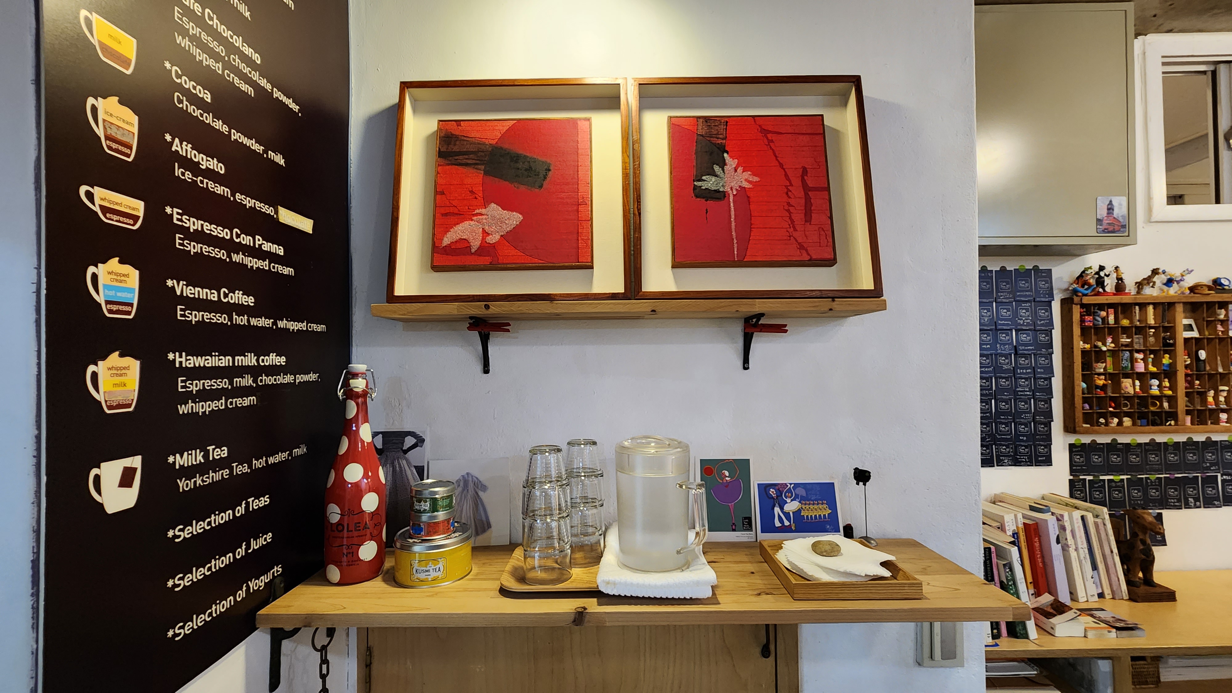 카페에서 읽을 수 있는 책과 손님들의 쿠폰들, 동글이의 눈길을 사로잡았던 피규어들까지 구경하는 재미가 쏠쏠했어요.