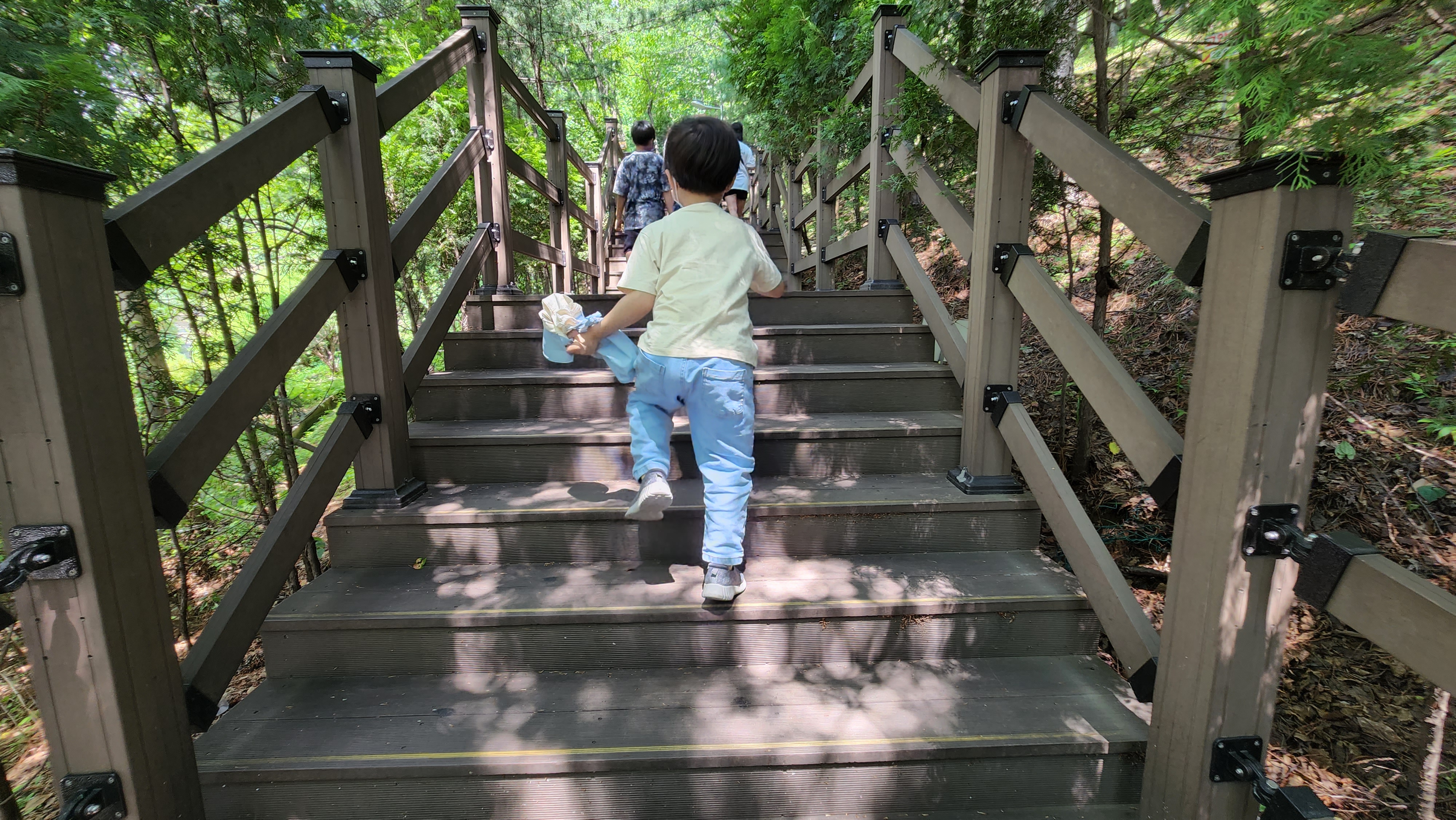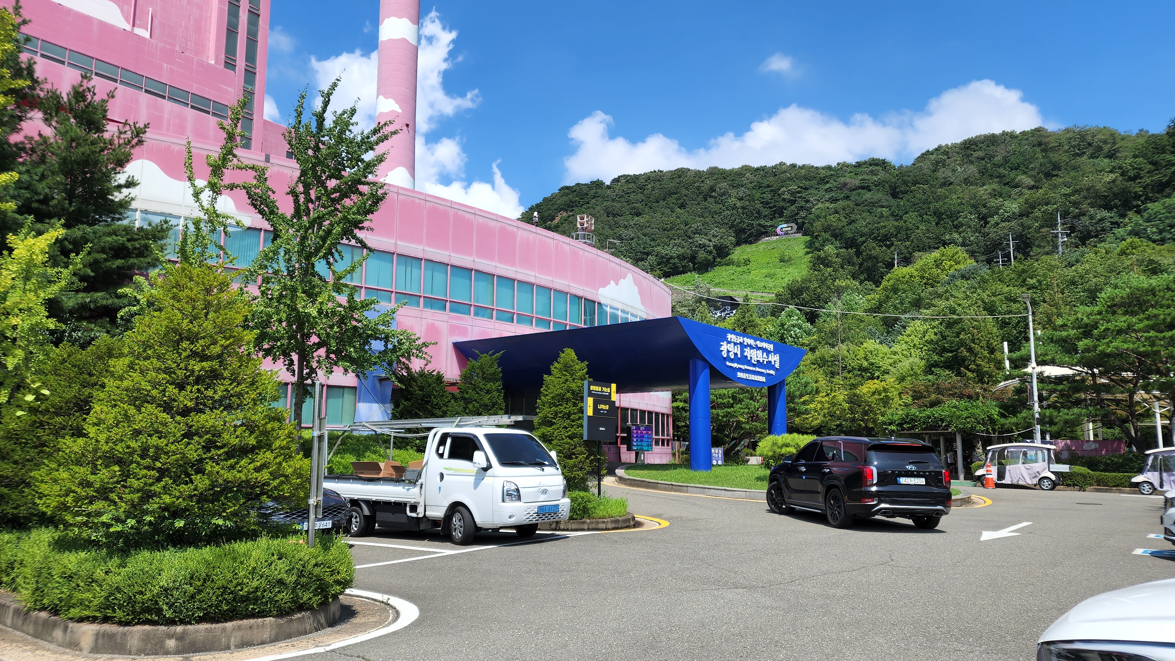 1주차장 주변에는 광명업사이클아트센터와 광명시자원회수시설이 있는데 이 건물들을 뒤로 하고 광명동굴 가는길 이정표를 따라 좀 걸어가셔야 해요. 유모차나 휠체어를 위한 경사길도 있지만 빠른길은 계단을 이용하시면 됩니다.