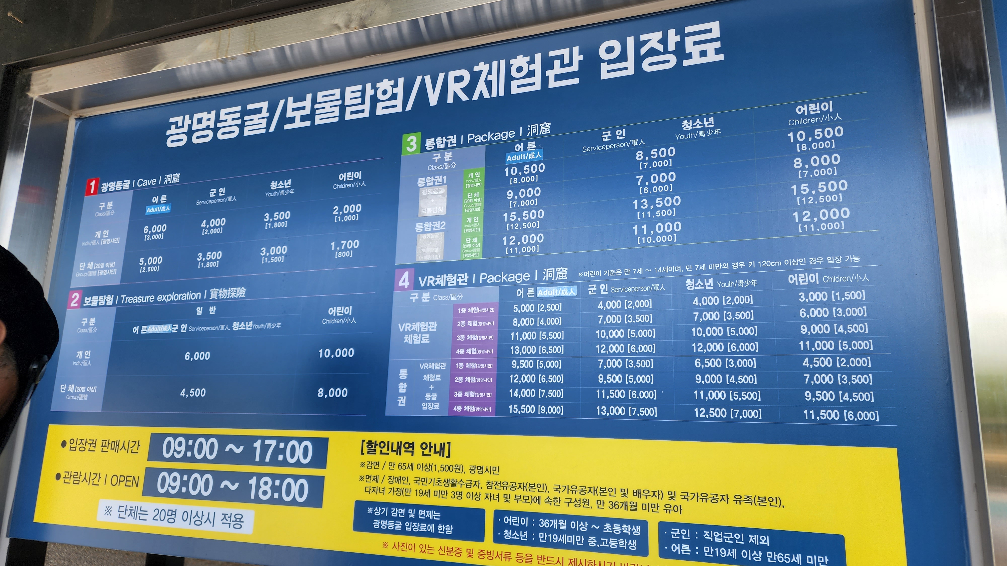 광명동굴 운영시간 : 9시 ~ 18시 (입장마감 17시)