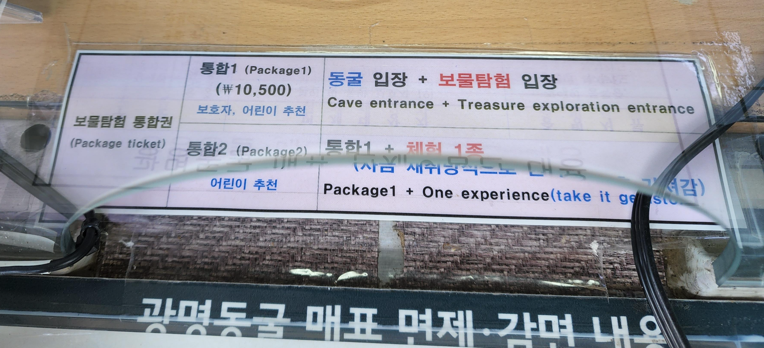 보통 보물탐험만 오시는게 아니라 광명동굴 관람도 함께 하시기 때문에 통합권을 이용하시면 조금 더 저렴하게 이용하실 수 있어요.