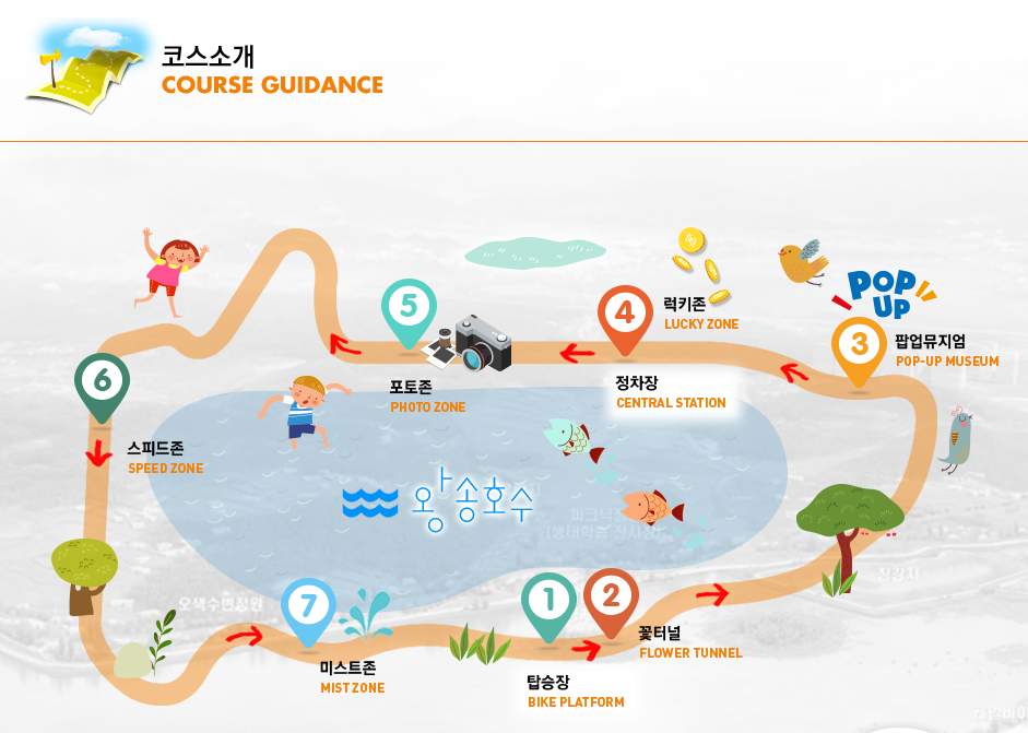 편안한 신발 꼭 신고 가시고, 오르막길 등이 있으니 체력은 비축해서 타시길 바랄게요.