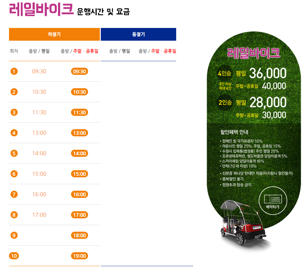 의왕레일바이크는 경기도 의왕레일파크 홈페이지에서 예매 하고 가셔도 되고,