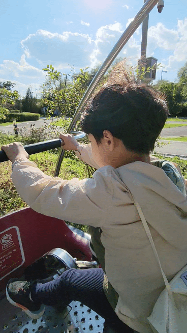 동글이 대신 엄마아빠가 열심히 페달 밟았어요.