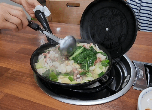 보글보글 끓으면 아주머니께서 와서 요렇게 뒤적거려주고 가셔요.