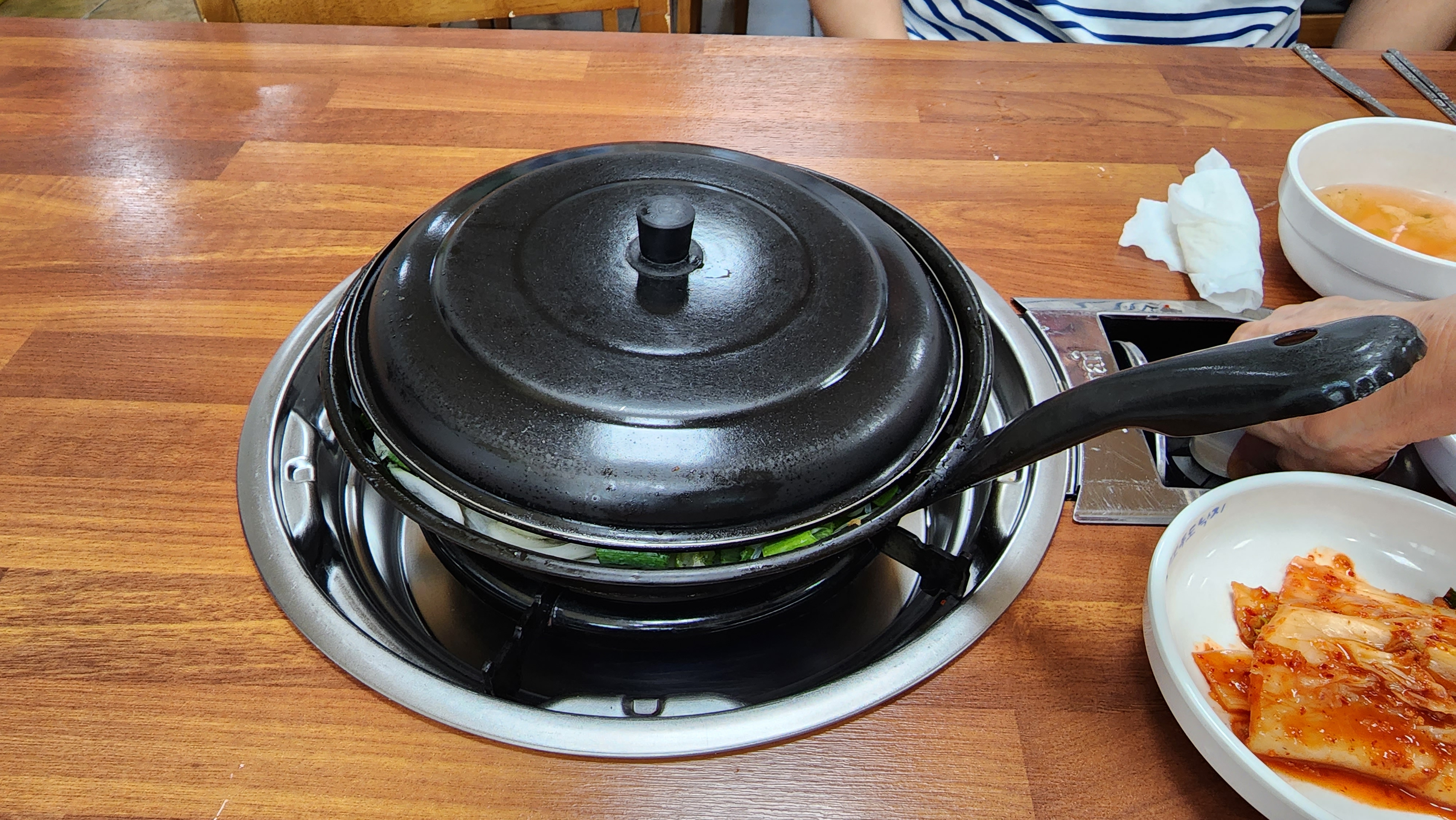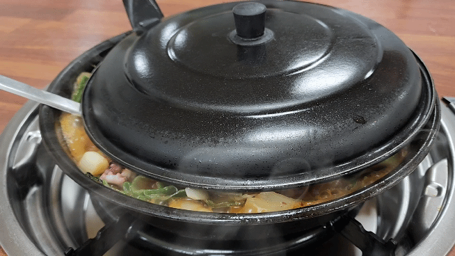 낙곱새는 요런 까만 냄비에 가져와 주시더군요.