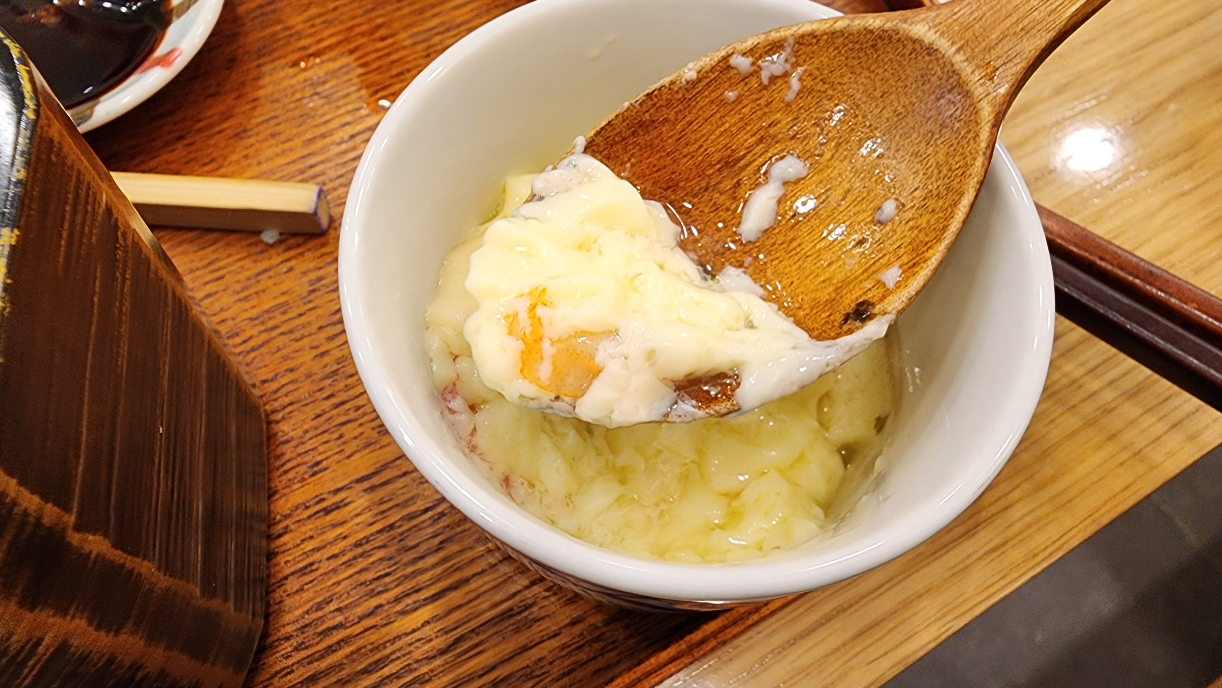김가루와 파를 넣고 가볍게 섞은 후 생와사비를 조금 얹어 먹기도 하고