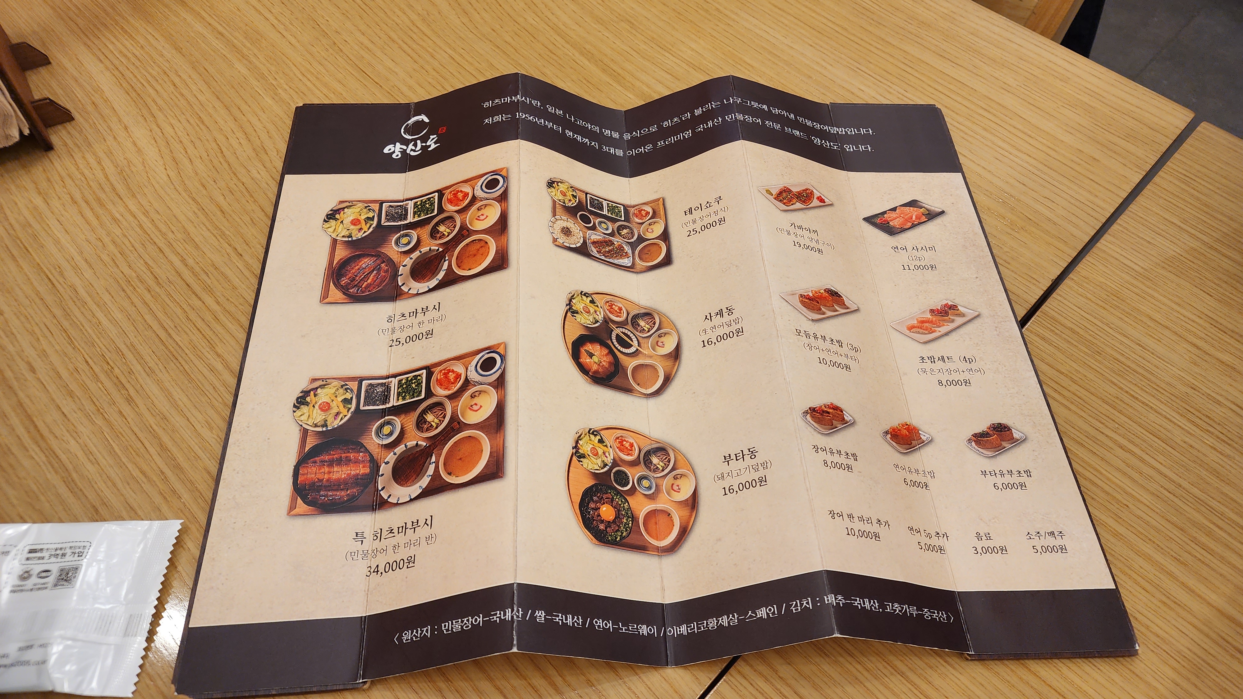 제가 원산지를 눈여겨 보는데 민물장어와 쌀, 배추는 국내산이었고 연어는 노르웨이, 이베리코황제살은 스페인, 고춧가루는 중국산을 사용하더군요.