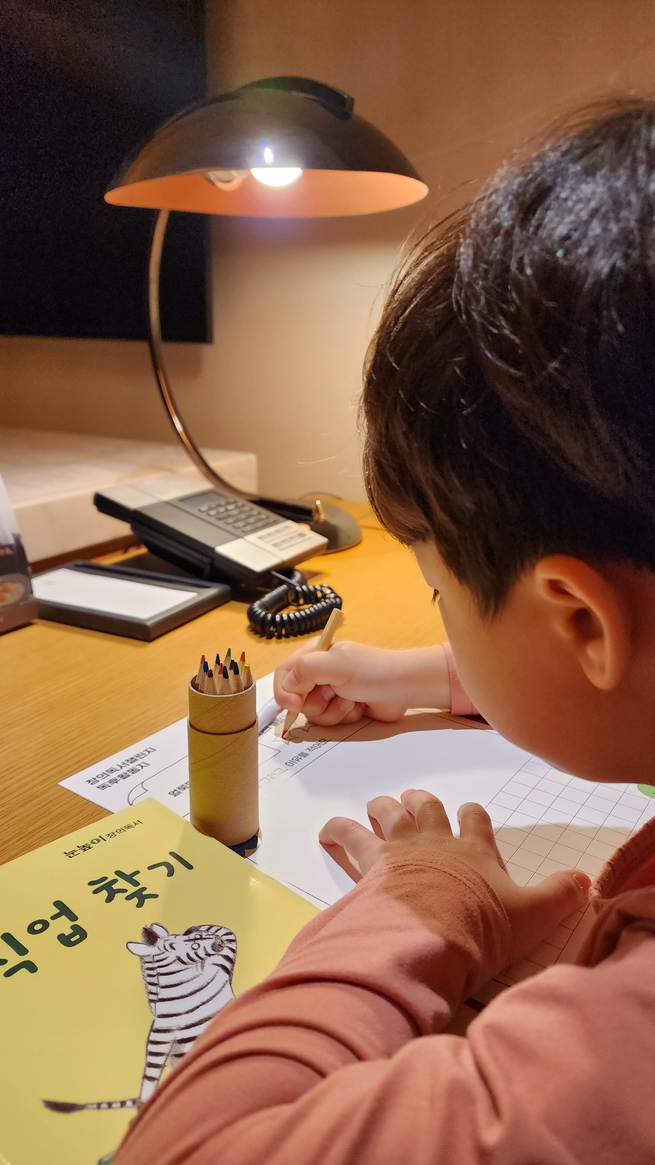 저희가 묵었던 파라다이스시티 객실엔 요렇게 사무공간도 마련되어있어서 눈높이 창의독서 책 가져가서 읽기도 좋고, 활동지도 편하게 할 수 있었어요.