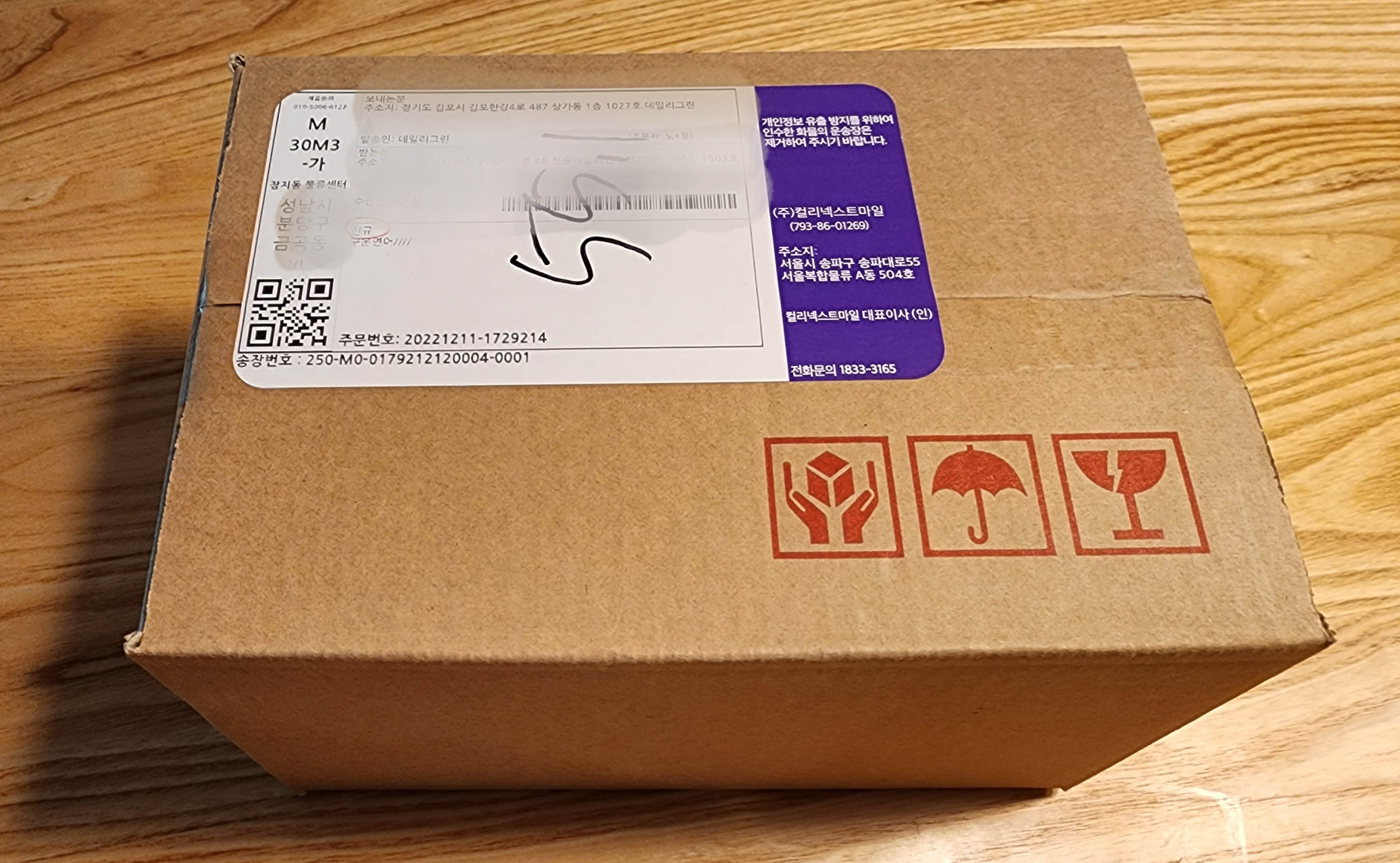 집앞에 무사히 도착한 샐러드 택배박스 사진과 함께 안내가 적혀있었어요.