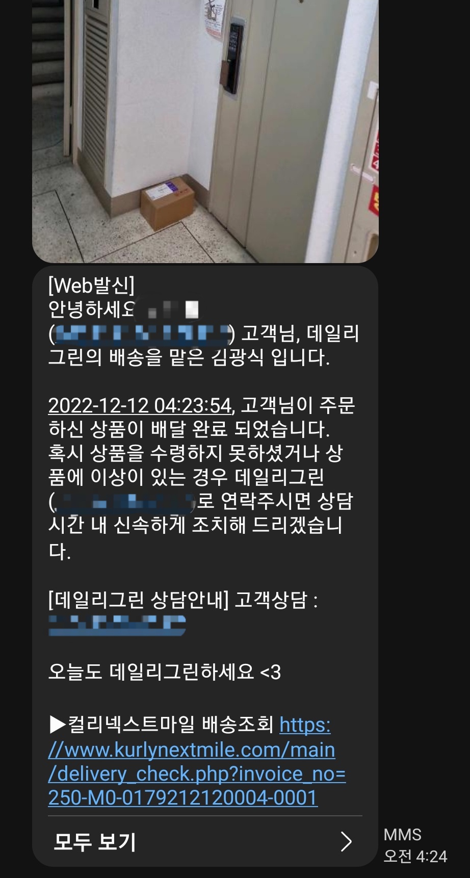 새벽 4시 24분에 받은 샐러드 배송문자예요.