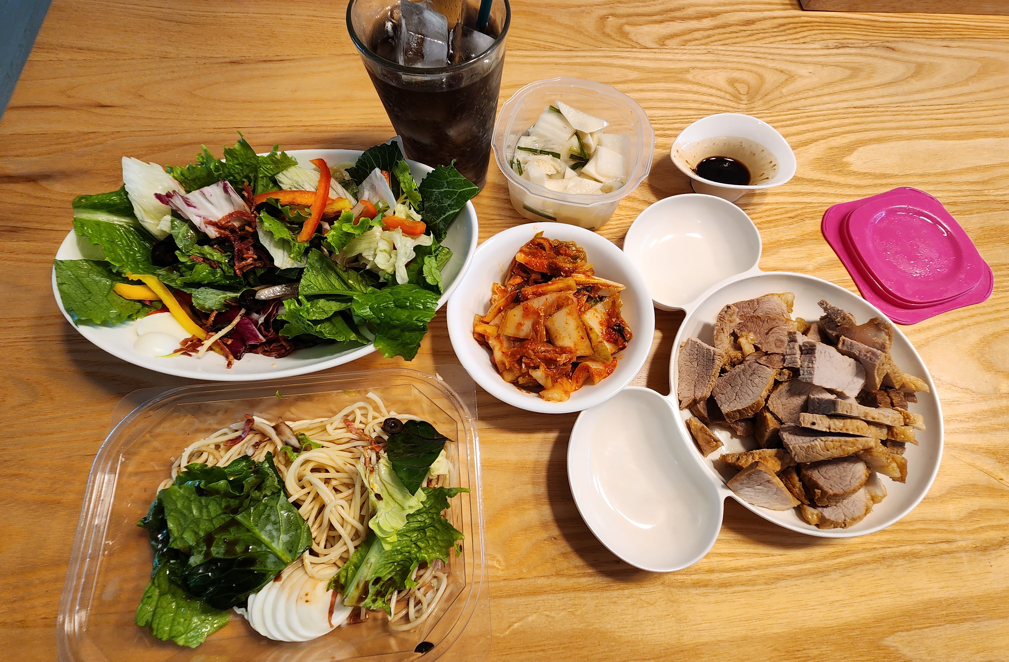 샐러드 양이 워낙 많아서 그릇이 넘쳐 나눠서 담아 먹었답니다.