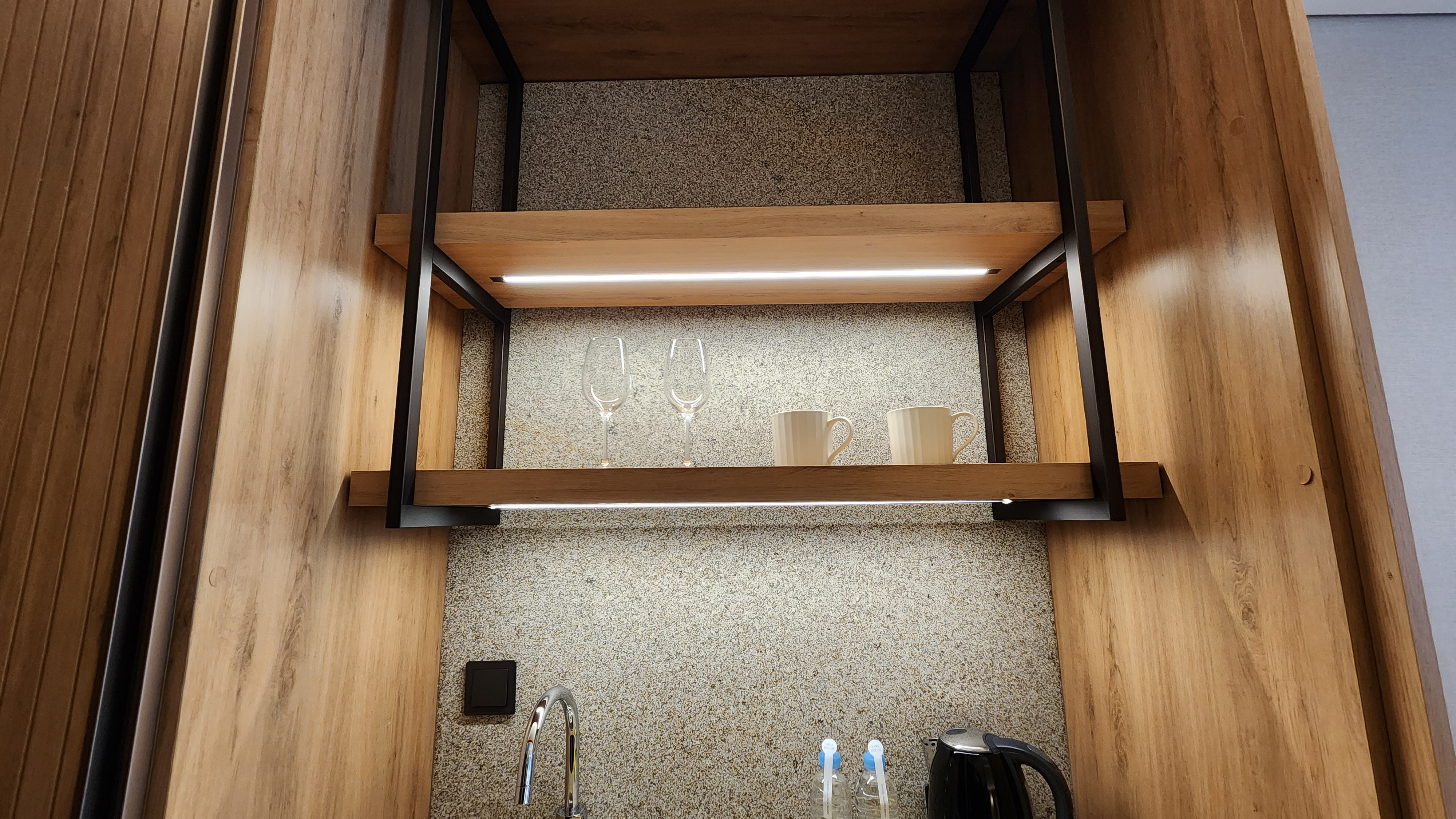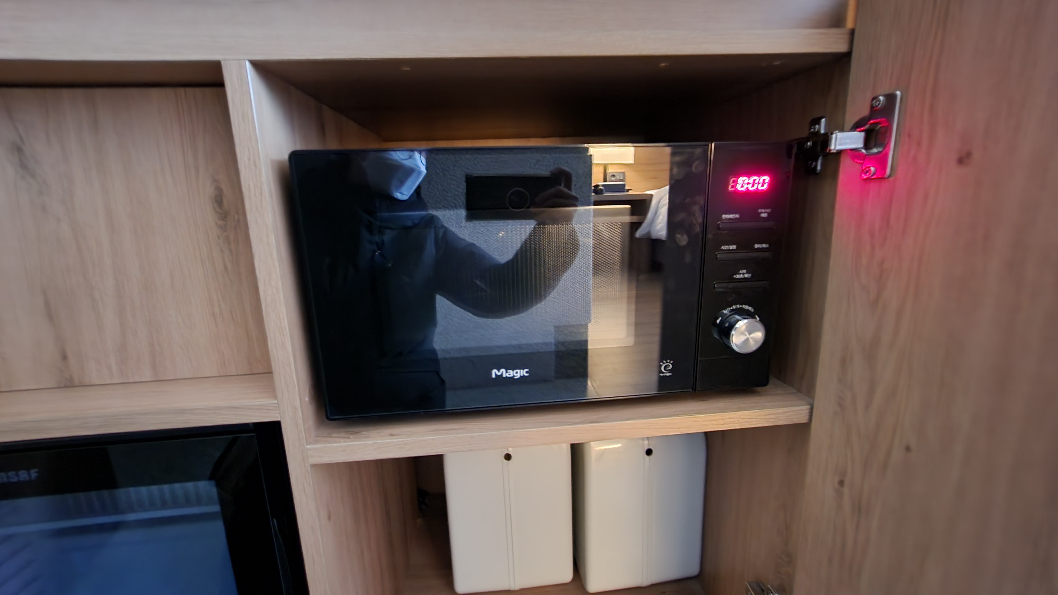 작은 냉장고, 전자렌지, 머그컵, 와인잔이 비치되어있었는데요 저는 전자렌지 사용 안했지만 객실에 전자렌지가 비치되어있어 유용하게 쓸 수 있겠더군요.