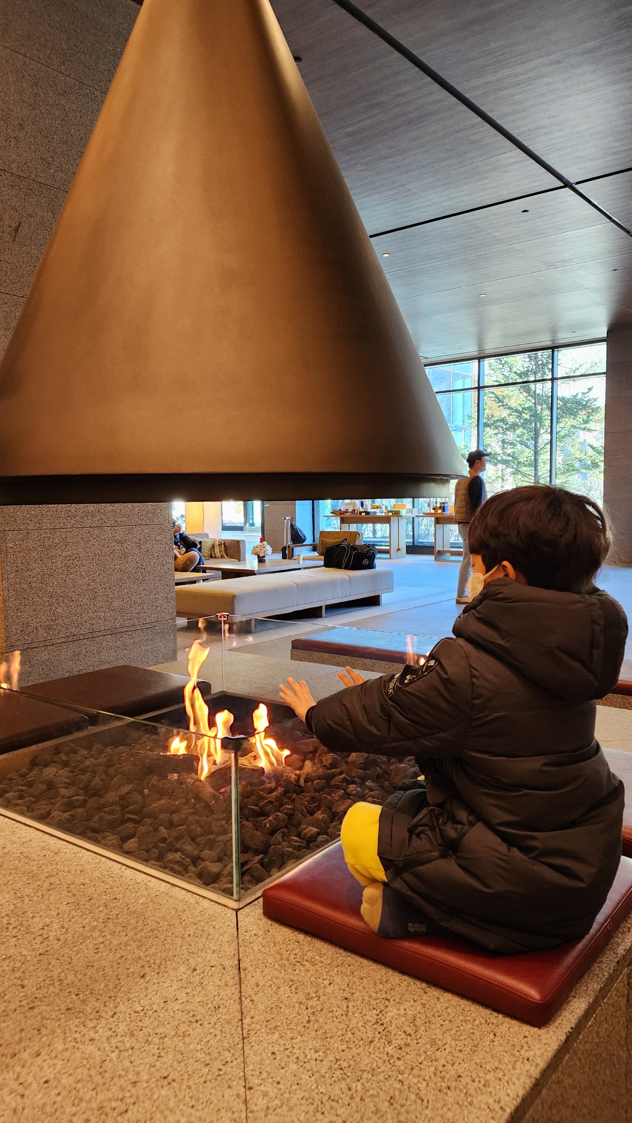 로비에 활활 타오르는 불꽃을 보며 불멍 할 수 있게 되어있어 좋았답니다.