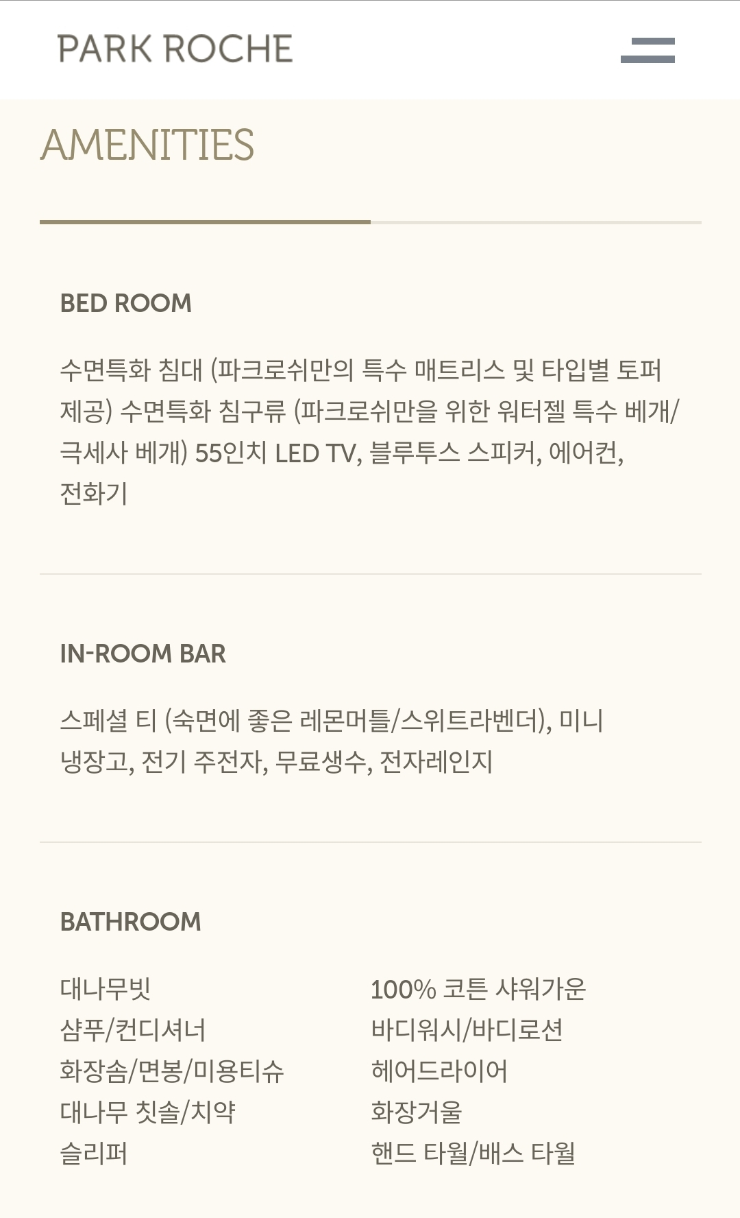 인테리어에 군더더기가 없고, 침구도 배기는 것 없이 포근했던 파크로쉬였어요.