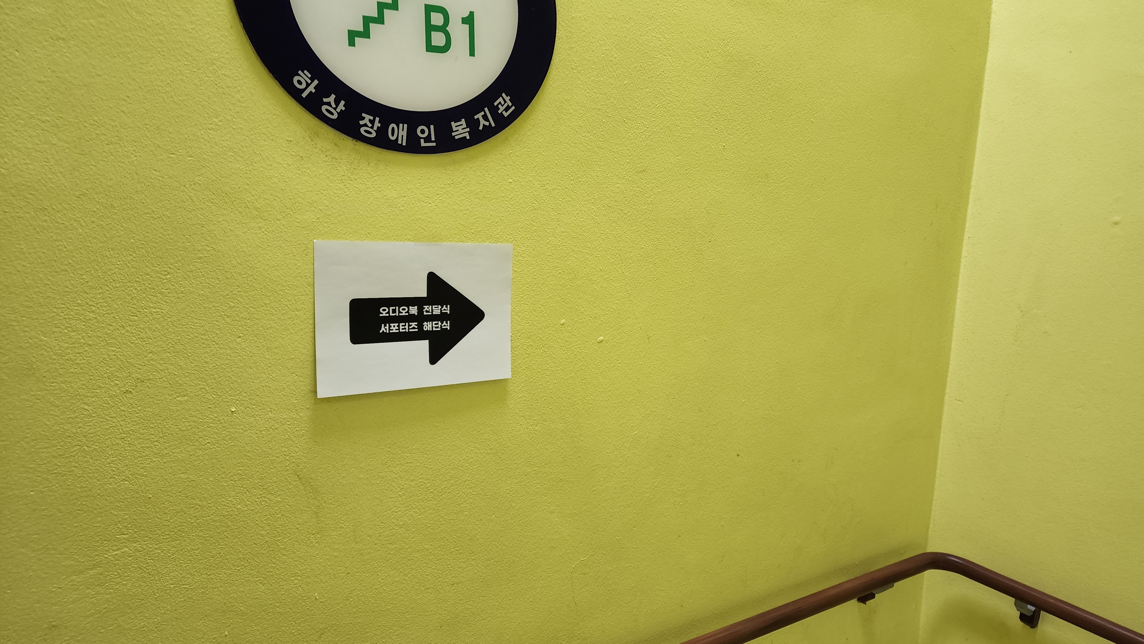 하상장애인복지관 지하 강당으로 내려가니 요렇게 이정표가!