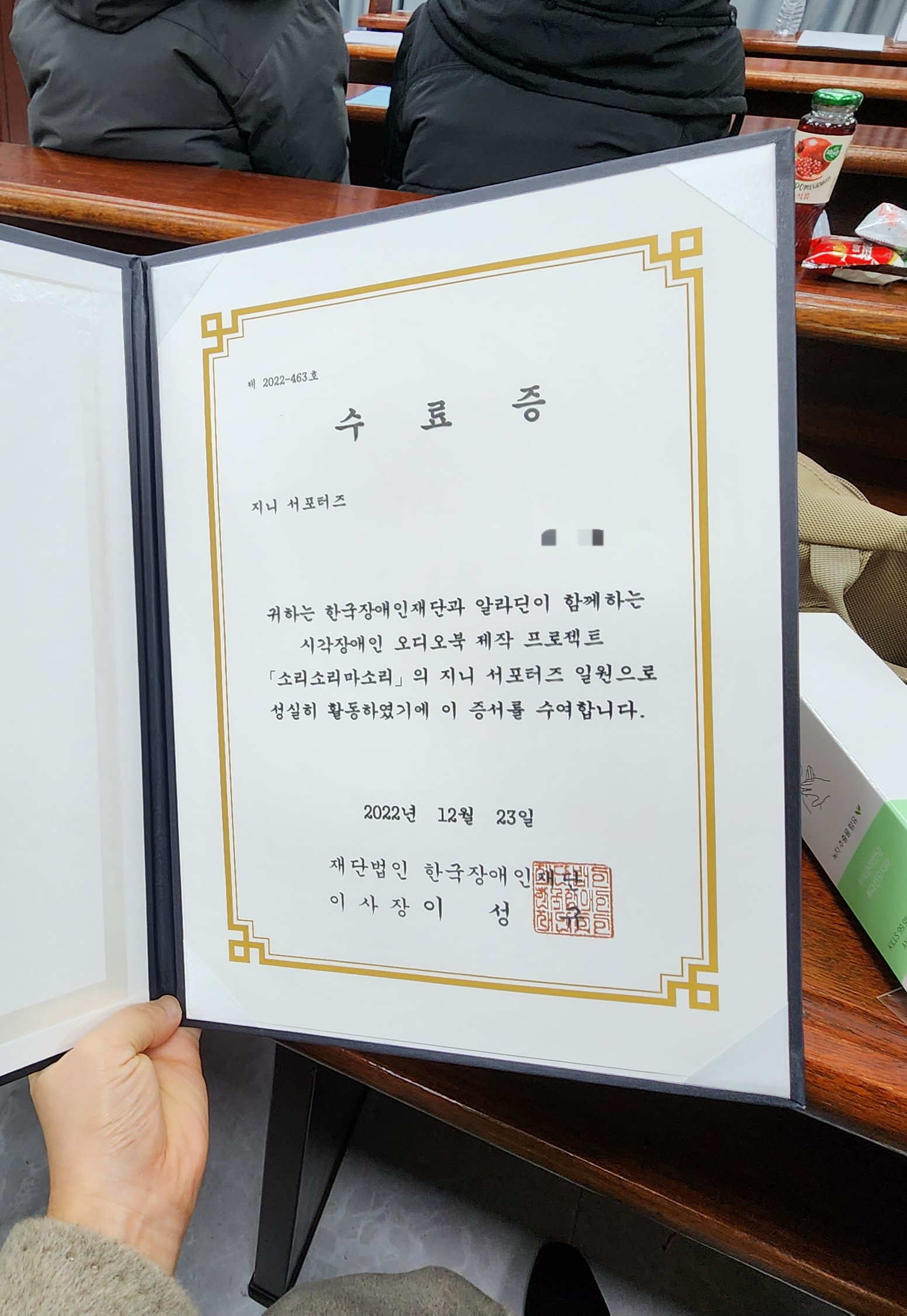 알라딘이 후원하고 한국장애인재단이 주관했던 소리소리마소리 지니서포터즈 활동 해단식 소식을 전해봅니다.