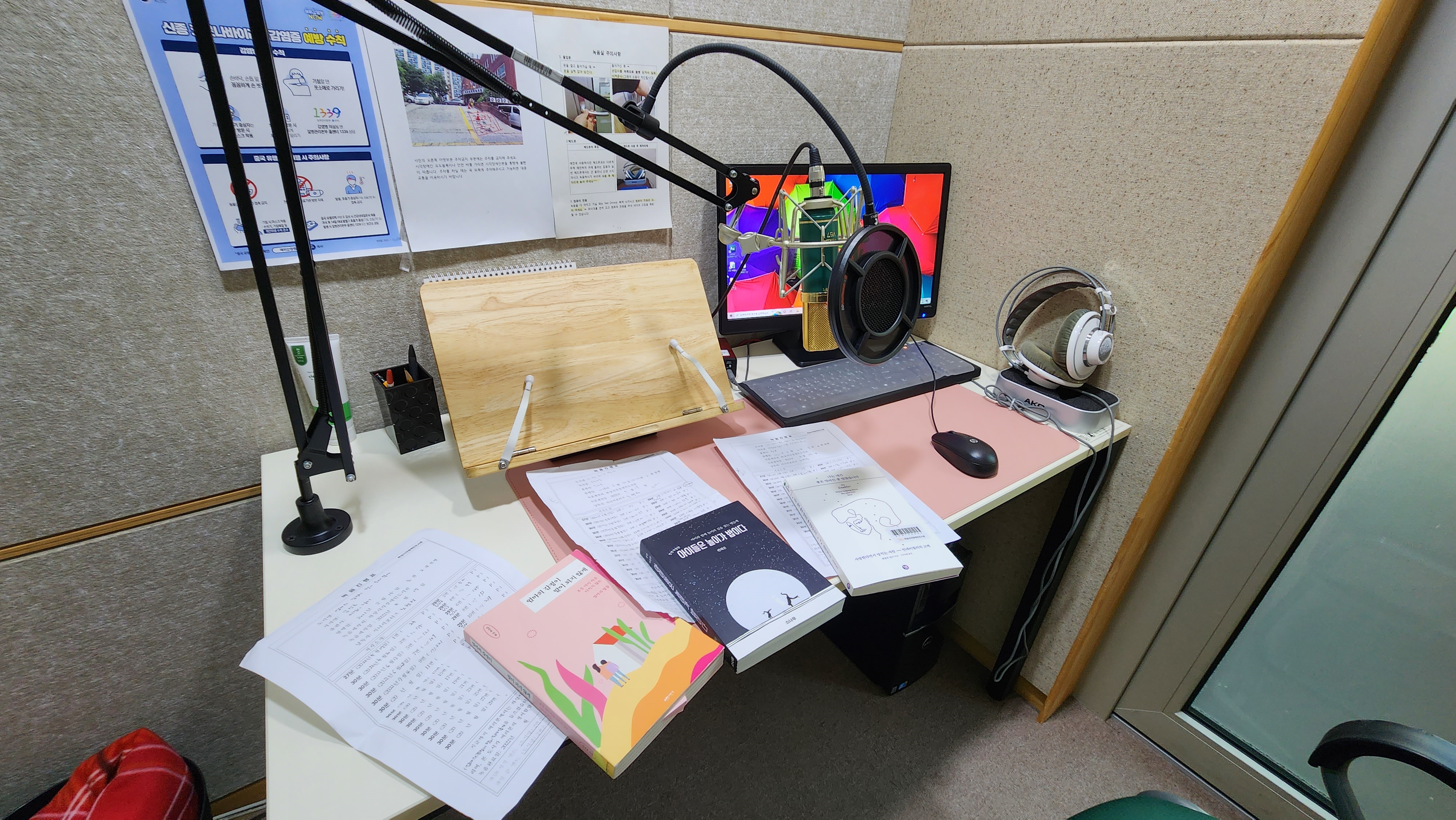 제가 지난 반년 동안 매주 이곳에 있는 녹음실에서 배정받은 도서들을 녹음했어요.
