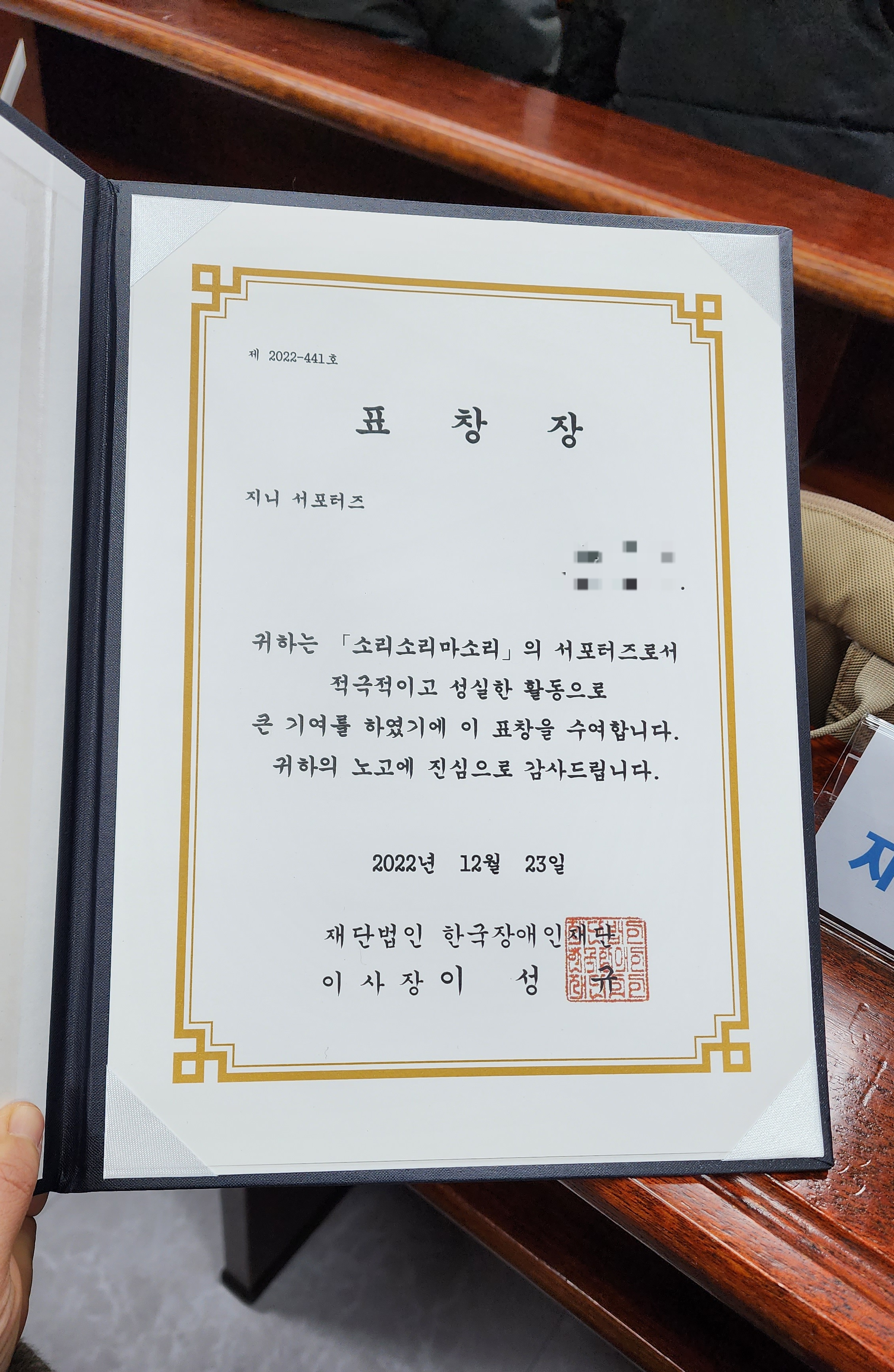 좋은 일에 재능을 기부할 수 있는 기회가 주어진 것도 감사했는데 이렇게 활동 후 상까지 받게 되니 올 한해 보람을 여기서 다 느끼고 가네요.