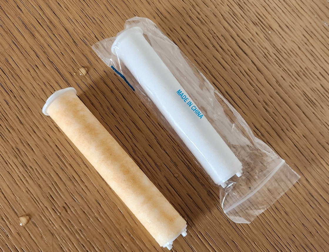 왼쪽 사진은 빈홀리데이 피에스타 푸꾸옥에서 1박 사용했던 샤워기 필터 사진이고요, 오른쪽 사진은 인터컨티넨탈 푸꾸옥 롱비치 리조트에서 2박 사용했던 샤워기 필터 이미지예요.
