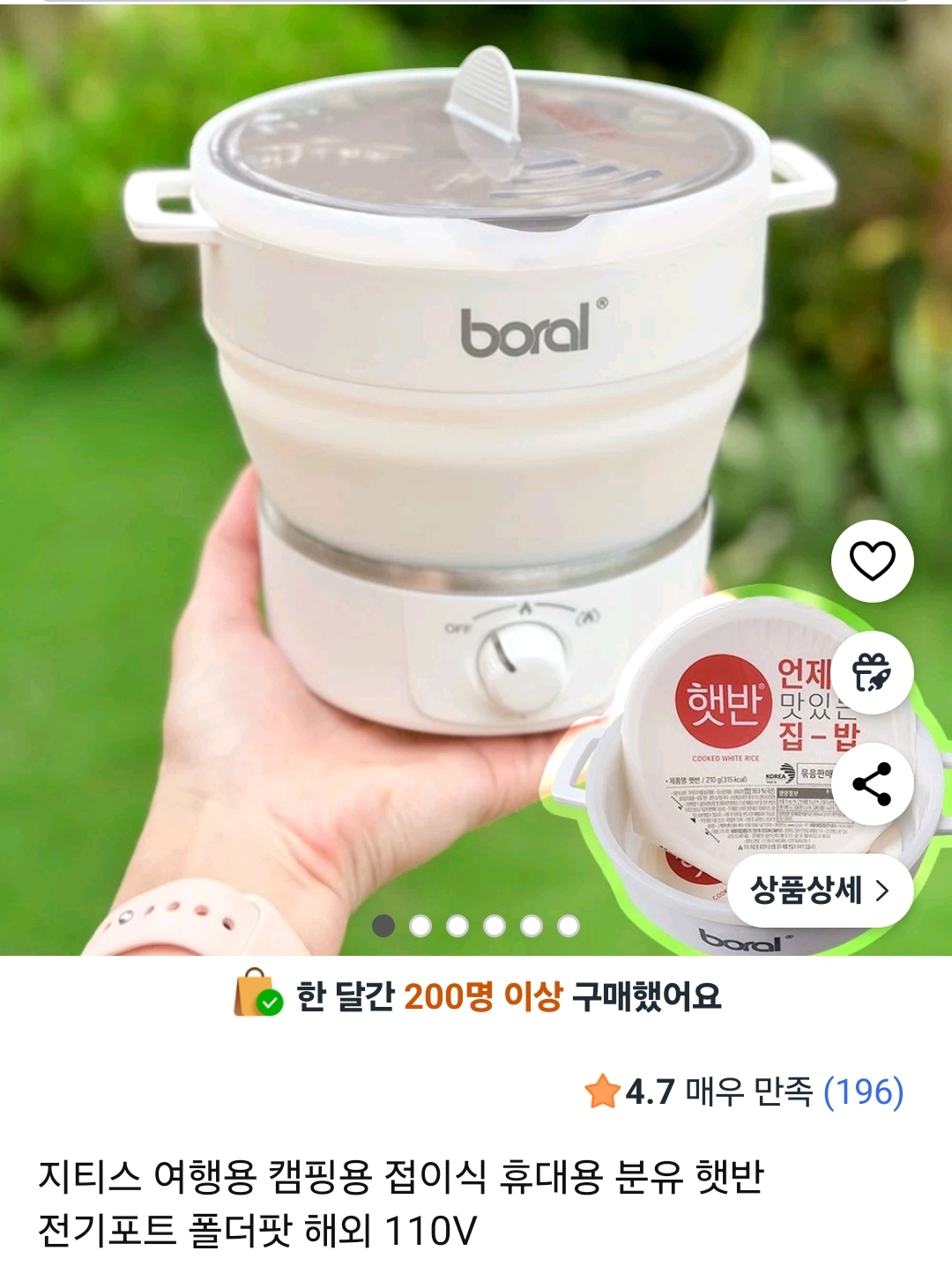 호텔에는 커피 포트는 있어도 전자렌지가 없어서 햇반 데워 먹이려면 접이식 전기포트 있음 좋더라구요.